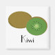 Um imã divertido com um kiwi inteiro e meio kiwi com carne verde deliciosa. Ripe para comer.