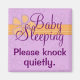 Quando você finalmente conseguir que seu pequeno durma, alguém vem e toca a campainha...e acordar seu bebê! Este pequeno e bonito sinal magnético permitirá que os visitantes e as pessoas saibam que há um bebê dormindo e que seria apreciado se não tocasse o sino. É um ímã, não um sinal permanente, por isso só se pode colocá-lo na porta da frente quando necessário. Este seria um presente de chá de fraldas único!