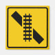 Rodovia internacional e sinalização rodoviária aconselhando uma ferrovia atravessando a estrada na diagonal!