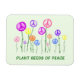 Uma design colorida de símbolo de paz "flores" crescendo em um jardim, com a mensagem "Plantar sementes de paz". Se querem ajudar a promover a paz no mundo, façam uso disto como um lembrete gentil para que todos nós atuemos de forma a fomentar a paz.