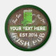 Personalize facilmente este aflitivo efeito de madeira irlandês, símbolo de pub, feito para parecer um velho barril de cerveja ou whiskey e cerveja gráfica e verde, com sorte, com um trevo verde de shamrock com o seu próprio texto ou nome para as comemorações do seu bebendo de Dia de São Patrício. Visite a loja PADDY_O_DOORS para obter produtos correspondentes e mais presentes no dia da PADDY_O_DOORS. CLIQUE EM PERSONALIZAR para ajustar o tamanho do texto ou a fonte que você também pode CLICAR EM PERSONALIZAR para alterar a cor de fundo externa da borda verde de um intervalo de mais de 200 cores.