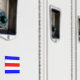 Sinalizador Náutico Sinal - Letra C Imã de geladeira Quadrada. Sinalizador de sinal marinho quadrado que significa "Charlie" - letra C com íman de bares de cor azul, branco e vermelho listrados.