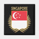 A bandeira nacional de Singapura é infundida numa forma de escudo temperado a ouro falso, que ela própria é colocada sobre dois ramos de folhas falsas de ouro.