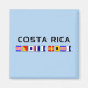 Mostra o nome do país da Costa Rica em texto preto moderno e escrito com sinais náuticos marítimos coloridos abaixo. Lindo lembrança para residentes da Costa Rica, San Jose, América Central, turistas, eco-turistas, visitantes, passageiros de cruzeiros, bebedouros de praia e água, como marinheiros, marinheiros, barqueiros, surfistas, narradores. Faça o sentimento náutico.
