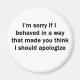 Para o amante sarcasmo em todos nós. Confira este design de "Eu sinto muito se me comportei de uma forma que fez você pensar que eu deveria pedir desculpas" no roupa, canecas, mousépias, botões e outros presentes exclusivos.