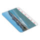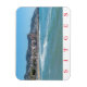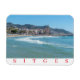 Uma bela vista do mar ao largo da cidade de Sitges em Espanha com a Igreja de Sant Bartomeu e os Papais noeis Tecla em segundo plano, impressos em uma imã de geladeira de souvenir.