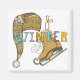 Um design de inverno bonito, com skates de gelo, e um boné longo com pom. Diz o inverno em uma fonte colorida e caprichosa. A parte de trás apresenta uma aparência de veludo desbotada. Em cores de chalé, ouro, roxo e branco. Um design de inverno bonito.