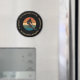 Composição atrativa de um esquiador de montanha ou descida contra o fundo do círculo colorido. O texto "MT. BAKER - 48°51'43"N 121°39'14"W - WASHINGTON, ESQUIANDO ME FAZ FELIZ" da cor amarela-ouro dá a volta à imagem. Esportes de inverno, feriados, viagem e ímã de aventura. Locais populares de esqui nos Estados Unidos da América. Para fundos de cor preta ou escura. O design para fundo colorido claro também está disponível. As respectivas versões para as mulheres estão à sua espera. Você pode transferir este design para uma variedade de outros produtos.