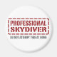 Skydiver profissional, não tente isso em casa. Se o Skydiving é seu passatempo, ocupação ou obsessão, mostre-o com t-shirts, excelentes de Skydiving, canecas, adesivos e muito mais. Eles também são presentes de excelente para outros fãs de Skydiving!