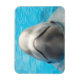 Baleia de Beluga tirando sua cabeça da água com um olhar manchado em seu rosto.