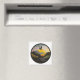 A sticker with an eagle flying over a mountain, in the style of contemporary landscape, golden light, black mountain college, fisheye lens, arts and crafts movement, mid-century illustration