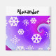 Coloque um no guardanapo em cada lugar. Personalize o nome como quiser! Um bonito fundo temático e roxo com flocos de neve deslumbrantes brancos.