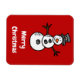 Ilustração para o Natal com decoração bonitinha e sorridente de boneco de neve e design de texto de Feliz Natal. É possível mudar a cor de fundo e adicionar uma diferente à design com sua escolha.