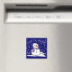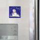 Bonitos imãs e presentes de inverno com ilustração de um boneco de neve vestindo um cachecol roxo lá fora onde está nevando e o texto lê: Deixe-o nevar. roupa de feriado excelente e presentes de férias para crianças, crianças e adultos que amam homens de neve! Da coleção de Natal de Designs de Lesruba.