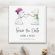 Beautiful, whimsical and fun winter save the date with two snowman making a heart with their branches. Illustrated and designed by Patricia Alvarez