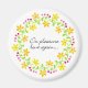 "Com prazer dobrado de novo..." Citação do Orgulho e Preconceito de Jane Austen, centrada num bonito círculo floral de margaridas e bagas (design baseado num padrão bordado da era da regência). Nada aborrecido sobre isso...laranjas alegres, amarelos, púrpuras e verdes.