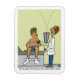 Um ímã com um desenho engraçado sobre saúde e pressão alta.