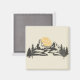 Simples ilustração do sol da montanha com montanhas, solários e pinheiros