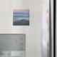 O imã de Souvenir com um nascer do sol embaçado com céu cor-de-rosa e névoa entre as colinas tucanas sobre o agriturismo podere il Belvedere, na fazenda de Valdorcia (Vale de Orcia), entre Pienza e San Quirico, na Toscana, Itália.
