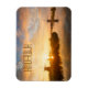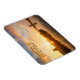 Magneta de fotografia de souvenir retangular com um sol vibrante sobre uma fileira de moinhos de vento e reflexão na água do rio, numa bela manhã, numa paisagem rural em Kinderdijk, nos Países Baixos, com o texto "Kinderdijk, Holland".