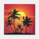 Belo desenho do pôr do sol tropical com palmeiras