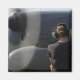 Um soldado monitora o desempenho de um novo motor Hércules C-130, reparado, apresentado com aeronaves.