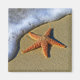 Fotografia de praia impressionante, um peixe-estrela laranja brilhante na borda das águas prestes a ser coberto por uma onda suave.