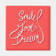Cartão com elemento design de tipografia desenhado à mão para posters e impressão de cartões de saudação. Sorria o sonho do amor com pequenas nuvens de corações e sorria em fundo vermelho eps 10 | Bigstock® - Todos os direitos reservados.