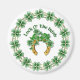Camarões sortudos e uma ferradura ouro com sotaque verde de fita. O texto diz... Sorte Os Irlandeses. Mais oferta, cartão e postagem disponíveis neste design