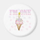 Um único design de primeiro aniversário em T-shirts de primeiro aniversário, fatos-chave, botões, bolsas e muito mais, com um bonito bolo de aniversário de sorvete cor-de-rosa, com uma vela e um texto cor-de-rosa que diz "Eu sou Um"!
