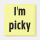 Ser exigente começa jovem! Bonito para bebês, e talvez verdadeiro para adultos se você é do tipo picante, este texto preto T-shirt, caneca, e outro item simplesmente diz "Eu sou exigente"!