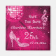 Elegante, glamouroso 25 Aniversário / Vinte e Cinco imã salve o dia de Aniversário. Trendy glitz e glamour Salve as datas para suas comemorações de 25 / 25ª festa de aniversário. Bela e deslumbrante prata brilha diamantes borbulhando joias de notas musicais imagem de nota musical, bola de retrovisor cor-de-rosa quente e brilho prateado estilete a imagem de calçado de moda de salto alto em um fundo rosa quente chic. Uma imã salve a data bonita, elegante, na moda, bonito para as mulheres. As mulheres vão adorar este design legal, divertido, engraçado e feminino por sua música glamourosa e 25 de dança/Vinte e Cinco festas.
