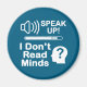 Make a bold statement with this “Speak Up – I Don’t Read Minds” design, featuring a speaker icon, volume bar, and silhouette head with a question mark. Perfect for teachers, customer service workers, introverts, extroverts, and anyone who wants to encourage clear communication with a touch of humor.