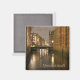 Uma fotografia noturna do município de Speicherstadt em Hamburgo, na Alemanha, aparece neste ímã de souvenir. O texto é personalizável ou removível. Os ímãs fazem um presente ideal, ou um presente pessoal para ficar no seu frigorífico ou no armário. Este ímã quadrado é de 2" x 2" (5 cm x 5 cm) ou você pode escolher entre um ímã redondo em diferentes tamanhos.