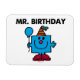 Com um maravilhoso chapéu de aniversário em forma de cone, um balão de aniversário azul, e um enorme sorriso, o Sr. Birthday está aproveitando uma celebração de outro ano no universo do Sr. Men and Little Miss. Esta design poderia fazer um excelente adicional a qualquer presente de aniversário que você esteja pensando em comprar para um amigo ou amado. O Sr. Birthday está pronto para festas, por isso convide-o para a sua cabana e deixe a diversão começar!