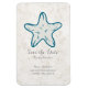 Perfeito para um casamento temático náutico é este casamento Rustic Starfish Salve o Primeiro Ímã Flexi com um peixe-estrela azul escuro em um fundo de mármore bege claro. Esta imã salve a data de praia clássica e simples é fácil de personalizar com seus detalhes de casamento. Localize mais opções de personalização clicando em Personalizar.