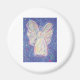 A arte mostra um anjo pastel macio contra um fundo noturno estrelado de pasta azul. A imagem foi inicialmente pintada com acrílico e depois terminada em pastel para criar a cor luminosa suave.