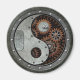Esta ilustração única da yin yang, a steampunk, apresenta velhas engrenagens enferrujantes e rebites de metal sólido. Um lado do yin yang parece ser o dentro de uma máquina complexa, enquanto o outro lado tem a aparência de uma peça sólida de aço. As texturas metálicas e as cores enferrujantes dão este símbolo para equilibrar uma forte sensação industrial. Esta design única é uma bela e na moda de interpretação deste símbolo antigo.
