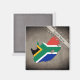Schönes Souvenir oder Inspiration für die nächste Urlaubsplanung: Magnet mit einem Umriss von Südafrika, gefärbt em den Farben der Nationalflagge. Auf der "Best in Viagem 2018"-Liste von Solitário Planet liegt Südafrika auf Platz 10.