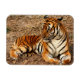 Íman flexível de 3" x 4" com uma imagem de um bonito tigre Sumatrano deitado no chão coberto de folha marrom. O tigre de Sumatra é uma rara subespécie de tigre, criticamente ameaçada, que habita a ilha indonésia de Sumatra. Veja toda a coleção de ímãs Safari nos TOUCHES ESPECIAIS | Seção Favoritos para festas.