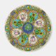 Arcos Art Nouveau cercam as camadas de vidro manchadas desta mandala, apresentando fogos de artifício, girassóis, conchas, sóis e tempestades em cores brilhantes para incorporar a atividade que vem com o verão.