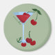 Design luxuosa de verão em tons de vermelho, com cerejas, um coquetel elegante e uma sutil dica náutica.