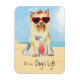 É a vida de um cão! Tenha legal e comemore os dias de verão do cão com este lindo Terrier Yorkshire vestindo óculos escuros e relaxando com uma bebida.