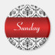 O imã Domingo "Dias da Semana" com uma faixa vermelha sobre o damasco preto e branco. Organize qualquer conselho de geladeira ou ímã com este ímã e os outros ímãs correspondentes que completem o conjunto. Cada um vendido separadamente, sem ordem mínima. Escolha seu ímã de tamanho.
