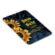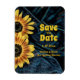 Casamento com jeans azuis de girassol amarelo rústico retrorreflector denim salvando a data do anúncio do íman refrigerador. Belo design floral. Imagem copyright Marg Seregelyi Fotografia.