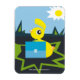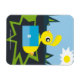 Design original para crianças, coelho ensolarado fofo e engraçado caminhando para a escola na floresta escura.