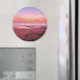 Um design de arte digital de um pôr do sol com nuvens e cores refletindo no mar e no litoral do País de Gales.