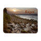 Uma fotografia do pôr do sol tirada da praia perto de Blandow, no Parque Nacional de Jasmund, em Rügen, Mecklenburg Vorpommern, na Alemanha, aparece neste ímã de souvenir. O texto é personalizável ou removível. Os ímãs fazem um presente ideal, ou um presente pessoal para ficar no seu frigorífico ou no armário. Este ímã mede 7,6 cm x 10,2 cm (3" x 4"), é feito de um vinil flexível que contorne a superfícies curvas, é resistente à água e à mancha e impresso com cor de cheio vibrante. Um ímã maior também está disponível, tamanho 10,2 cm x 15,2 cm (4" x 6")