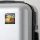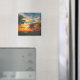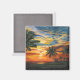 "Stunning Tropical Sunset II", por Carolee Vitaletti. Possui um pôr do sol contra árvores e água na praia.