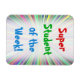 Este design de ímã festivo e inspirador mostra a mensagem "Super Estudante da Semana!". Um ímã como este talvez pudesse ser usado para dar motivação positiva a um aluno. [~Z0000317]